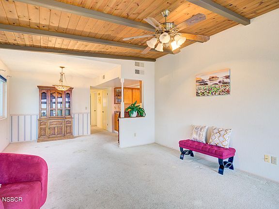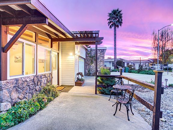 Welcome to this single level 2 bedroom, 2 bath home with a bonus sunroom in a 55+ age restricted community, on one of the biggest lots on the street. The stained-glass front door beckons you into the living room living room where there is lots of natural light. Stunning wood beamed ceilings are in the living and dining room. The delightful kitchen has storage and nice laminate floors. The hall bath has a pedestal sink and tub/shower combo. The primary bedroom has great closet space and has an attached bathroom. The second bedroom can be used for a guest room or office. There is an additional sunroom with a pine wood beamed ceiling and fantastic skylights to allow lots of light in. It was used as a dance studio but can be just about anything from a workout room, art room, or family game room. There is a terrific 2 car garage to store your cars or toys. The backyard is a quaint, charming oasis with sweeping sidewalks leading to the enchanting gazebo and the garden shed. The garden shed is equipped with electricity and running water. The gazebo offers privacy and modern comforts with a ceiling fan to keep cool if you choose to add a hot tub there. Located close to the beach, shopping, and the Village of Arroyo Grande. Come check out this home, it won't last long!
