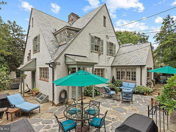 Welcome to this stylish and sophisticated stone and stucco French style Tudor home featuring five bedrooms, three full baths, two car detached garage and fenced yard perfectly nestled in coveted Homeland. This home has been impeccably updated and represents a harmonious blend of timeless charm and modern luxury. The spacious living room is truly the heart of this home and features a glorious wood-burning fireplace with stone surround. The elegant and generously sized dining room is an entertainer's delight with french doors to the idyllic sun room that opens to the courtyard and patio. The fully equipped chef's kitchen with granite countertops, Wolf Stove and high end stainless steel appliances, is perfect for the culinary enthusiast. The upper levels feature four spacious bedrooms including the primary suite with a sleek new full bath. The fifth bedroom and third full bath are found in the completely finished lower level with laundry room, additional space for a home office, family room, ample storage, 2020 Boiler and new zoned AC. The enchanting and fully fenced backyard, features a stone courtyard with built in stone fireplace, and a bucolic garden; truly an outdoor oasis and the perfect respite to a hectic day.