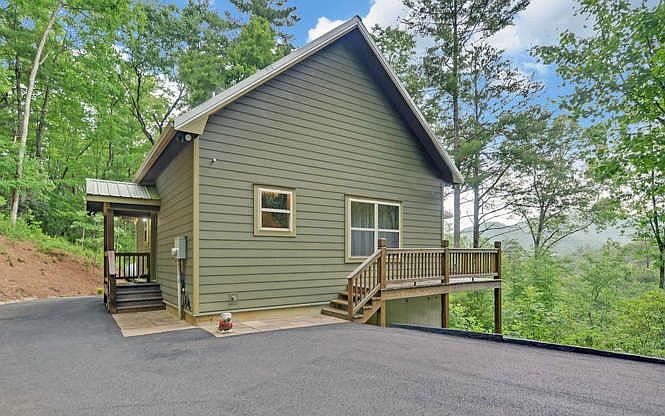 PRIVATE and FURNISHED mountain cabin, off the grid amenities & year round VIEWS! This 2BR/2.5BA, loft, 2.88 acres, stream & more. Main level includes the Great Room with large kitchen area, 1/2 bath & covered front porch. Loft above could be office, den or sleeping. Partially finished basement includes storage space, laundry and a mostly finished bedroom & completely finished bath. The materials are there for you to finish as you like. Extras include full home generator with automatic transfer when lose power & run by propane, a Rinnai tankless water heater (endless hot water), whole house water filtration system, 2nd HVAC for basement & gated, paved driveway, front porch has mountain views & the wildlife too. Exterior wood has just been water sealed & stained & septic pumped & inspected. Close to US Forest Service, waterfalls,Vogel State Park & in town restaurants, shopping & more.