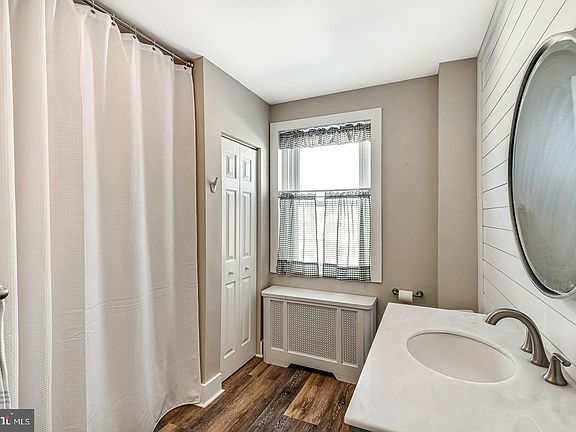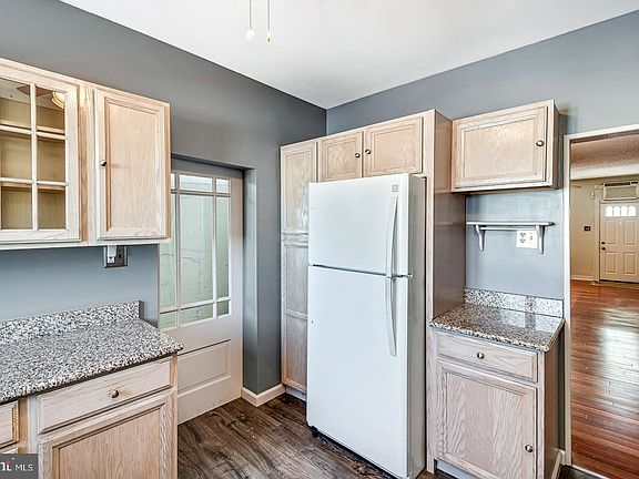 What a find! Cozy and comfortable, this charming home with parking awaits your personal touch. A short walk takes you to restaurants, delis, banks and the seat of local government. You will enjoy sitting on the porch with a front lawn or gardening in the backyard under a tree. The lovely kitchen with white appliances, granite counter tops and new flooring with light wood cabinets has a covered entrance from your 2-car driveway and allows easy unloading of groceries. Also handy, is the covered alley from the back of the house to the front. Upstairs you'll find a large sunny bathroom with a new vanity and the trendy shiplap wall. A beautiful stained-glass window adorns the middle bedroom and the main has mirrored closet doors. An extra bonus is the finished shower stall and facilities in the basement with step-up access to the backyard. The peaceful street has no outlet and very little traffic. A real gem in a neighborhood with steadily appreciating values ... you can be sure this treasure won't last.