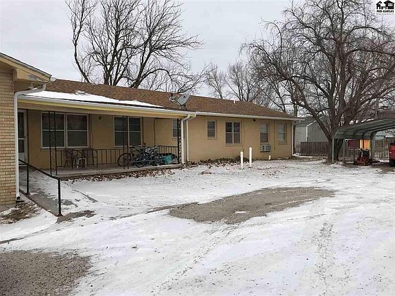 3 unit multifamily home for sale on a corner lot in Moundridge. Front unit has 3 bedrooms on the main floor and possible 2 bedrooms downstairs, 2 bathrooms and an attached garage. 2nd unit has 4 large bedrooms, large utility room, 2 bathrooms and shared parking space. Spacious yard handicap accessible. 3rd unit is a one bedroom apartment. The space is all new with updated handicap accessibilities. New roof, new HVAC and AC units, new sewer and plumbing updates in all 3 units. This spacious triplex has a new back foundation and all the major updates done. Cosmetic updates are needed in some of the units, wood floors under carpets need to be refinished, paint, and countertops would get you top dollar.