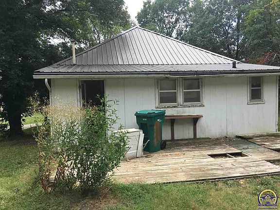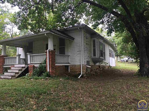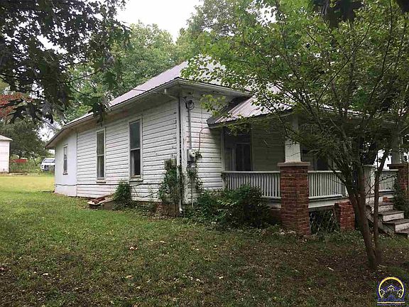 Two bedroom one story home with covered front porch. Two car detached garage. Deck in back.