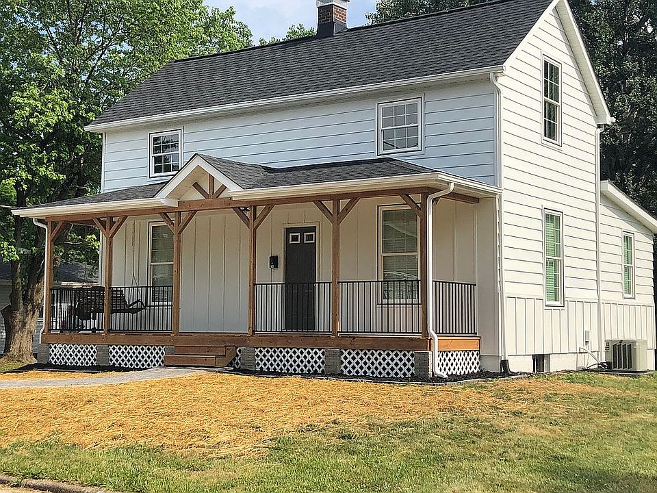 FSBO: 3bed 2bath, 2-story country style home which has been Completely remodeled inside and out in 2020. Sit back and relax on your new spacious front porch with attractive black railing, brick pillars and beautiful beadboard ceiling featuring lights. New eat-in Kitchen w/all new Whirlpool appliances and spacious counter tops. All new cabinets with crown molding featuring under counter lights and can-lights that shine down from the new beadboard ceiling. Shiplap wall in one bedroom. Washer/Dryer hookups upstairs or downstairs (you choose). All new insulation, drywall, plumbing, roof, gutters, Pella Windows, water heater and 90% all new electric throughout. New Board & Batton and aluminum siding on outside of house. Garage completely resided including roof. Newer garage door and new opener. New front sidewalk constructed out of paver brick and stone steps. Front landscape and new grass. Rear of house features a new deck, large private back yard nestled in mature trees with visible wildlife. House completely painted in neutral/gray colors. New Mohawk waterproof laminate floor throughout first floor and Shaw carpeting upstairs, with tile in large bath. Granite, marble and laminate countertops. Bonus room in basement. Save $ by Contacting Owner Directly to View at: 618-660-6550