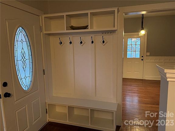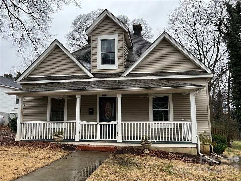 Charming three bedroom two bath 1 1/2 story home near downtown Mooresville. Rocking chair front porch & fenced back yard. Step inside to hardwood floors and your drop zone. Enjoy evenings in the Living Room with a decorative fireplace. For entertaining, the dining room is spacious with wainscoting all around. The kitchen is well adorned with a decorative tile backsplash & black appliances. Enjoy morning coffee at the breakfast bar. Lots of cabinets and storage in this kitchen. Laundry closet conveniently located off the kitchen also boasts even more cabinets. Large primary bedroom with natural light on the main with walk out to deck. Second bedroom off hallway on main floor with convenient hallway bath. Walk upstairs to see the 2nd Primary Bedroom/Bonus Room with it's own bath. The back deck overlooks the large flat fenced backyard. Ready to move in!