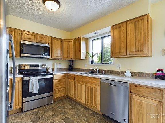 Discover your ideal home, perfectly situated in town directly across from a beautiful, spacious park. This inviting residence has undergone numerous updates, including new carpet, an updated bathroom, and a brand-new kitchen with sleek cabinetry and modern appliances. The cozy upstairs living room features a pellet stove, while the deck off the kitchen offers easy access to the backyard for outdoor enjoyment. Downstairs, you'll find a convenient laundry room with an additional bathroom and a family room with a wood stove. The downstairs third bedroom has a large closet and is non-conforming. The converted garage serves as a dance studio with a removable false floor, providing versatile space for your hobbies. This home also includes ample garden space and a dog kennel. With a furnace for backup heating and great spaces for hosting friends and family, this home perfectly blends comfort, convenience, and charm.