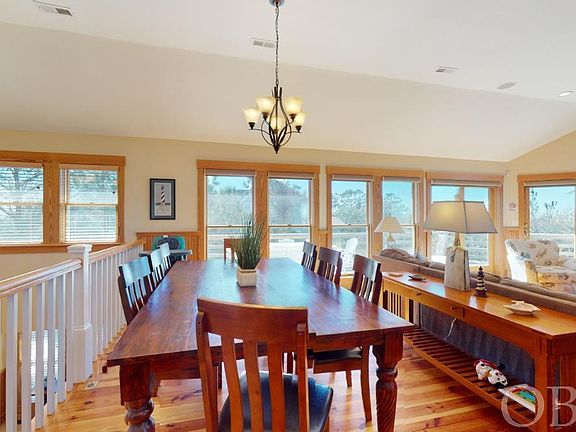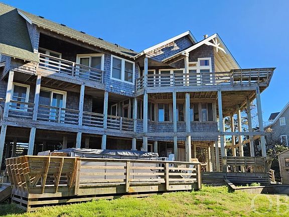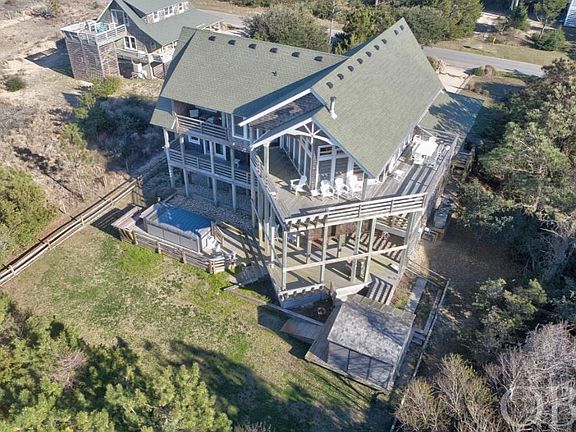 This home is one of a kind! Centrally located in the heart of Nags Head, on the sound, Sandsational is master piece. This home offers plenty of windows that give you views of Jockey's Ridge on one side and the sound on the other! Sandsational offers all the amenities you need with easy Sound Access, an elevator, large hot tub, endless swimming pool and spa, expansive decking, large screened in porch, outdoor shower, fenced in yard, shed and four master suites. The top floor offers a great room with cathedral ceilings, a gourmet kitchen which includes granite counters, stainless steel appliances, double wall oven, butcher block island, and large pantry off to the side. The top level also includes an office area cut out and the largest master suite. The master suite is what dreams are made of with it large closet and bathroom. Head down to the second level where three more spacious master bedrooms are located. The bottom level holds the laundry room. Invite all your friends and family to stay with you in this perfect home for entertaining together in the great room upstairs but still allowing privacy. Don't miss out on this custom built home!
