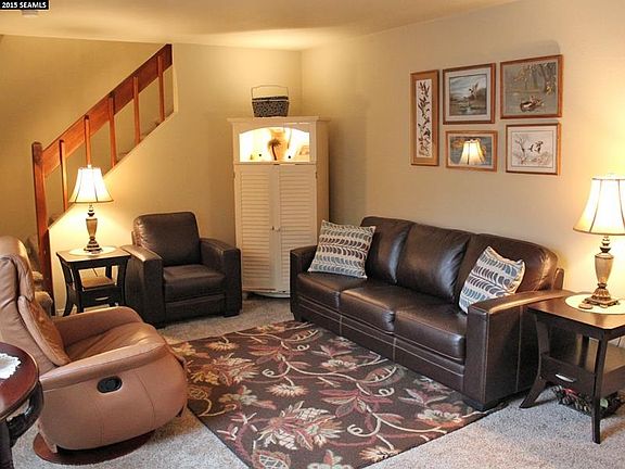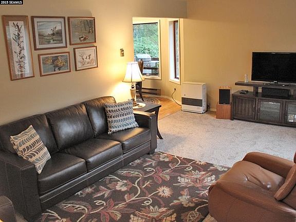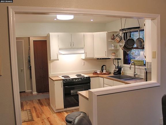 This 3 bedroom zero lot line home has been updated throughout with new hickory hardwood flooring in the kitchen and dining area, new stainless appliances, tile in the bathrooms, and fresh interior paint. There are 3 bedrooms on the upper level with lots of closet space and a centrally located bathroom. Enjoy the natural forest landscape from the covered deck. With access from the dining room, it's a good spot to BBQ and entertain. The garage is wired for cable. Use it for parking or a work space.