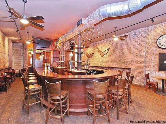Uptown Kingston mixed use building featuring a fully equipped turn-key restaurant/bar with two NYC loft style apartments, one on the second and third floor. Thriving restaurant has recently closed due to owner relocation (business is for sale asking $100,000 and $7,000 month rent). Second floor apartment has been completely renovated offering 1 bedroom, two full bathrooms and a rooftop deck (could easily be a 2 bedroom apartment) and is currently rented for $2,200 a month with the tenant paying all utilities. Third floor apartment is currently one unit, 2-3 bedroom with two full baths (but was split into two 1-bedroom apartments in the past), available for rent at $2,500 with electric included. In this unit there are two full bathrooms, 1 kitchen and laundry area that was previously the second kitchen, unit could easily be converted back into two apartments. Income and expense sheet reflects current status of building with projected rents as a commercial space and 2 apartments. See associated docs for income and expense at asking price. Full basement with high ceilings is great for storage, has full beer cooler and office. The exterior offers a front patio facing Wall Street and a rear patio facing Fair Street (could be used as parking or additional seating).