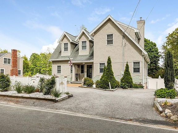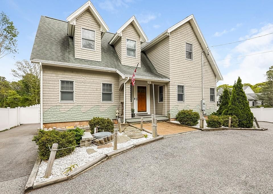 This unique home is known as the ''Wave House'' in the coastal community of Sagamore Beach! Truly a home for a beach lover - the shingles feature sea blue waves, bubbles and starfish. There is SO much to love about this home, from the beautiful custom built-ins throughout to the large 2-tier deck w/ bar (w/ electricity & USB charging option), patio and outdoor fireplace! Stunning hardwood floors throughout most of the main level. Easy flowing floor plan w/ a large Kitchen including granite countertops, beautiful newer stainless steel appliances, breakfast bar & large pantry! The bright, sunny living room features built-in shelves & gas fireplace, opens to the lovely dining room w/ a feature wall with custom built-in wine storage! Dining room overlooks the home office that was previously a greenhouse when originally built. The 2nd floor features 3 bedrooms including the Master Suite w/ private bathroom & 3 closets! 2 year old Garage w/ a finished room above!
