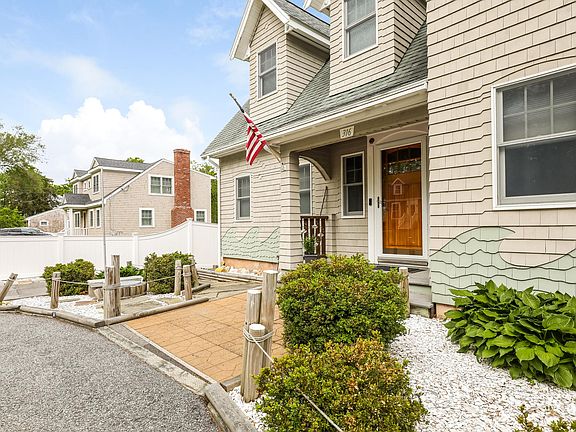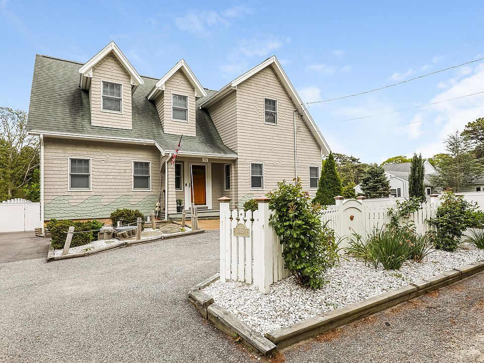 This architecturally unique home is known as the ''Wave House'' in the coastal community of Sagamore Beach! Truly a home for a beach lover - the shingles feature sea blue waves, bubbles and starfish. There is SO much to love about this home, from the beautiful custom built-ins throughout to the large 2-tier deck with bar (with electricity and USB charging option), patio and outdoor fireplace! Stunning Brazilian hardwood floors throughout most of the main level. Enter the home with an easy flowing floor plan w/ a large Kitchen including granite countertops, beautiful newer stainless steel appliances, breakfast bar and large pantry! The bright, sunny living room features built-in shelves and gas fireplace and opens to the lovely dining room with a feature wall with custom built-in wine storage! Dining room overlooks the home office that was previously a greenhouse when originally built. The 2nd floor features 3 bedrooms including the Master Suite with private bathroom and THREE closets! Current owners finished the lower level complete with projector and built-in screen for fun movie nights. This home has an abundance of storage space, you'll be amazed! Head outside to the 2 year old Garage featuring a finished room above - perfect for a home gym, separate home office or craft space! Did we mention the new fence installed in 2019? Walk to Sagamore Beach and spend your day in the sun! This incredible home is NOT to be missed!