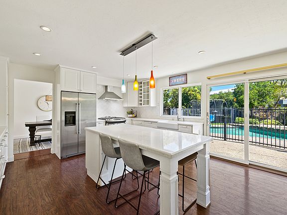 Owner has accepted an application, we are waiting on the signed documents. This stunning 5 BDRM, 2.5 BA residence with approximately 2,398 sq ft, a sparkling pool offering everything you need for a vibrant, modern lifestyle move-in ready. A beautifully updated kitchen with quartz counter tops, a large island for effortless meal preparation and casual dining. Updated appliances include a stainless-steel refrigerator, dishwasher, 2 ovens a gas cooktop with oven for precise cooking, a convenient electric wall oven and microwave efficient for all your cooking needs. The main level offers the primary bedroom suite and another bedroom which is perfect as an office or for guests. The upper level has 3 spacious additional bedrooms that share a full bathroom. Indoor laundry room includes a front loading washer and dryer with an attached two-car garage, plenty of storage. Beautifully landscaped yard with an inground pool, mature trees and colorful flowers frame the expansive patio areas for outdoor dining and entertaining, perfect for summer relaxation. Situated in a sought-after Walnut Creek neighborhood, this home offers close proximity to Heather Farms, top-rated schools, down town shopping, dining options and more. Available February 1, 2026. Renter is responsible for all utilities, water, garbage, electric, gas, Cable TV & Internet. Added bonus: The house offers solar electric which is owned and not leased.