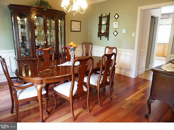 Beautiful 4 Bedroom 2 1/2 Bath Doylestown Township Colonial. Step into the 2-Story Foyer w/Dark Cherry Bannister flanked on the right by a formal Living room w/wainscoting and and crown molding and on the left by the Formal Dining room w/wainscoting and crown molding, all are enhanced by the Brazilian cherry hardwood floors. Meander back to the Kitchen w/hardwood floors, Corian Counter tops, Tile back splash, centre isle w/glass cooktop, double wall oven, and spacious Breakfast room w/vaulted ceiling tile floors and Atrium doors to the newly decked rear deck w/hot tub. The enormous Family room comes with Berber carpet, raised Brick Hearth and custom built Cherry bookcase. The incredible Sunroom steps down from the Family room and opens up with a stunning wood paneled/beamed cathedral ceiling. The three walls contain nothing but windows letting in tremendous amounts of light and includes an Atrium door to a slate patio and private back yard. Enter the Master bedroom through double doors and be greeted by Brazilian Cherry floors, crown molding, a sitting room w/custom made Cherry Bookcases, two walk-in closets, and a beautifully remodeled all tile Master Bath w/raised jetted tub, glass enclosed shower stall and double vanities. The second floor also boasts 3 additional spacious bedrooms and a full sized Hall Bath. The partially finished Basement includes an office/game room, and a full sized daylight walkout. Includes a newer roof, Heat and A/C and a three car a garage w/inside entrance. Located in the Central Bucks School District and just minutes from downtown Doylestown Borough.