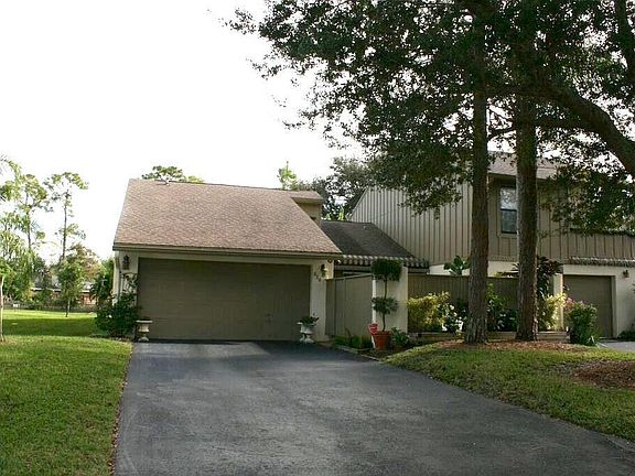 Beautifully remodeled 2/bedroom, 2/bath with 2/car-garage villa. Quality upgrades with 42'' kitchen cabinets, granite counter tops, self closing drawers, under cabinet lighting and upgraded stainless steel appliances. 18'' tile in kitchen, living room and dining area, gas stove, hot water heater and dryer are an added bonus. In addition, both bathrooms have been remodeled with upgraded granite and wood cabinets. Hurricane impact glass French doors and hurricane shutters for windows. Other features include cathedral ceiling, auto-garage door, laminate wood flooring and dual closets in the master bedroom. The corner villa provides extra side yard and backs to a canal with lushes landscaping. The fenced entrance courtyard is paved and has a retractable awning for shade.