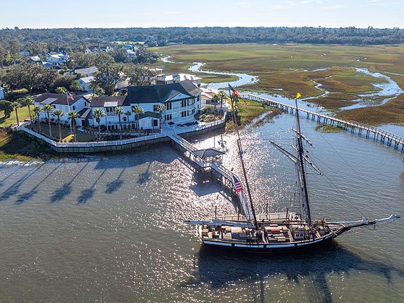 Nothing compares to The Mansion on St Simons Island, offering every imaginable luxury for living the Golden Isles lifestyle! Welcome to coastal elegance at 316 Yacht Club, where sophisticated living meets the serene beauty of the waterfront. This residence provides a rare opportunity to indulge in a lifestyle of luxury and leisure, surrounded by panoramic views of Frederica River and beyond. This home was designed to be timeless and will never be outdated, with classic, luxurious finishes such as Turkish Travertine stone and true hardwood flooring throughout. More than 11,000 square feet of living space, including a full guest quarters with kitchen & laundry over the 8 car garage, all tide dock area that is permittable for expansion & covered dock pavilion with built in seating, navigable for any size boat, anytime. Featuring a swimming pool, hot tub, fire pit, grilling station, outdoor shower, built in dining islands to accommodate 16 or more, game room with wet bar, home gym, multiple lounge areas & pool room with entertainment station & full bathroom. Quick & easy access on & off the island, near the FJ Torres causeway. This property sits on 3 lots & offers the most spectacular sunrises & sunsets you'll ever see, right in your own backyard. Priced under current appraisal.