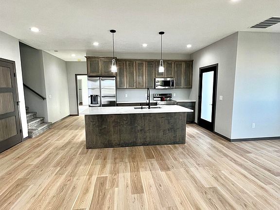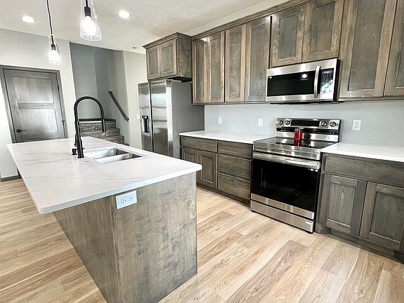 Discover modern living in this, just under, 2,000sqft custom-built 2-story home nestled within a vibrant new development. Clean lines and bold colors define the exterior, welcoming you to an open-concept interior with luxury vinyl floors through out and contemporary finishes. Kitchen features high end custom cabinetry, granite counter tops, large island for eating/entertaining. Large main floor bedroom with 2 walk in closets and full bath. Laundry on both floors and extra living space accompanies 3 bedrooms and full bath upstairs. Energy-efficient design with the thriving community, creating a perfect blend of style and functionality. Welcome home to this meticulously crafted residence in a dynamic, emerging neighborhood. Agent is related to seller.