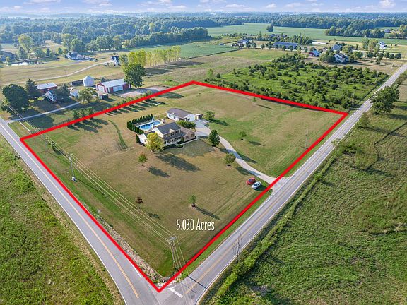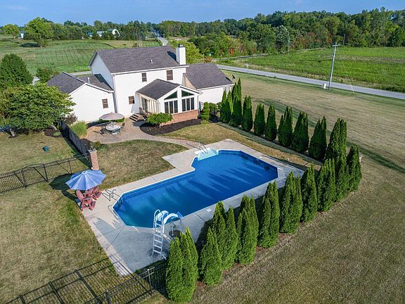 WOW! One owner custom built 2003 home features 2,993 sq. ft. of living space on 5.03 acres. Offers 3 bedrooms (potential 4th), 2.5 bathrooms, a formal dining room, and an expansive eat-in kitchen with quartz countertops and stainless steel appliances. Cozy living room has a wood-burning fireplace. The oversized first-floor primary suite offers a walk-in closet and whirlpool tub. Second floor offers 2 bedrooms and a den that can be converted/used as a 4th bedroom. Enjoy the 4-season room with an array of windows. Outdoor brick paver patio leads to a fenced, heated in-ground pool with a water slide. 30x50 detached garage is insulated and has water connected. Concrete driveway will lead you to this private, tranquil retreat that is awaiting a new owner to call it home.