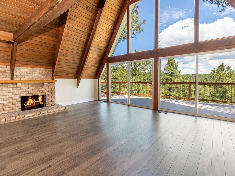 This Cabin in the woods is the one you have been waiting for! From all 4 levels in the home, you will find SOME OF THE BEST SAN FRANCISCO PEAKS VIEWS in Flagstaff. This home has recently received a full makeover with no stone left unturned. 1/3 acre lot located in a very quiet Cul De Sac and backing up to the protected Wetland Forest Service. New extended Asphalt driveway for plenty of parking, WRAP AROUND Teakwood deck (3 sides of the home), automatic watering system, and walking distance to the community park. As you enter the home, you will be blown away by the floor to ceiling windows, new exterior and interior paint, new flooring throughout. open floor plan concept, with a BRAND NEW kitchen, pantry, granite counter tops, kitchen island, and stainless steel appliance package.