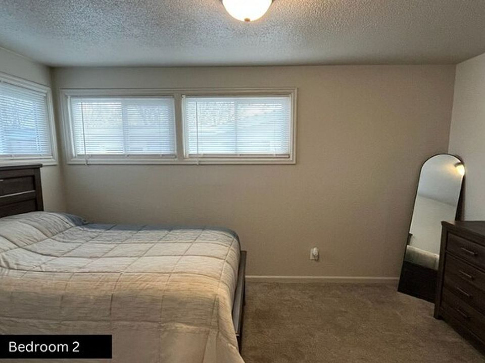 Living Room -1 sectional couch with 6 pillows -1 end table -1 coffee table -1 standup floor lamp -1 console table with a plant decoration -1 entertainment stand -1 flatscreen television with antenna and Roku -1 rectangular area rug -Decorative vases -1 air purifier -1 outdoor themed 3 piece canvas wall art -1 wall decorative piece -coat closet Kitchen -appliances: stove/oven, refrigerator, microwave, counter top dish washer -toaster -1 Keurig coffee maker -1 air fryer -1 electrical can opener -1 silverware set and 1 silverware tray -1 knife set -1 plate set -1 bowl set -food storage containers -pots and pans -1 slow cooker -cups and mugs -1 dining table with 4 chairs and 4 table mats Bedroom 1 -1 full size bed with comforter set and two pillows -1 dresser -2 nightstands -1 flatscreen television hanging on wall -1 computer desk with 1 office chair -1 bookshelf -1 standing fan -1 standing ironing board Bedroom 2 -1 full size bed with comforter set and 2 pillows -1 dresser with an over the top mirror -1 shoe rack -1 night stand with 1 alarm clock docking station -1 window unit air conditioner -1 standing mirror -1 small trash can bin -2 additional comforter sets and 2 pillows Bathroom -1 shower curtain -1 shower caddy shelf -1 hamper -1 small trash can bin -1 shower rug -towels, hand towels, and toilet paper Laundry Room -1 washing machine and 1 dryer -1 trash can -3 shelves attached to wall -paper towels -laundry soap -1 ironing board and 1 plug in iron -1 handheld toolbox