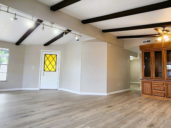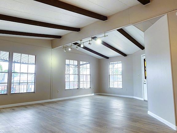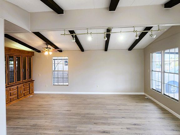 Freshly remodeled, double wide home on a great 55+ Adult Community. New paint inside and out, new laminated flooring in all living areas and bedrooms, new water resistant flooring on kitchen, laundry and hallway bathroom. Updated LED lighting, new baseboards, new ceiling fans & lighting fixtures. Spacious and bright living/dining area with vaulted ceilings and faux accent beams. Huge kitchen with plenty cabinetry, walk in pantry, dual wall oven, new stainless steel dishwasher and hood range. Updated bathrooms feature new vanities, master bath has a spacious tiled walk in shower tile flooring and barn door. Brand new HVAC system 2022, new water heater. Carport coverage on both sides, south part is extended and great place to chill and enjoy the outdoors. Spacious open backyard Huge workshop 16x10, with electricity and window AC + Additional shed under north carport. This is a move in ready home come and see it soon !!