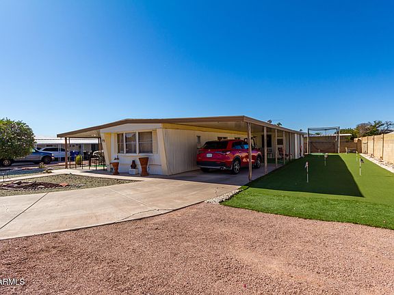 Charming 2-Bedroom, 2-Bath Home in Village Grove, Mesa. Welcome to your ideal retreat! This delightful home offers a perfect blend of comfort, functionality, and outdoor enjoyment. Featuring 2 spacious bedrooms, each with its own private bath, and a versatile bonus room, this property is perfect for year-round living or a seasonal escape. The interior boasts bright living spaces with wood-look flooring and a neutral color palette, while the kitchen provides ample cabinet space, generous counters, and built-in appliances. Outside, you'll find a low-maintenance front yard, a cozy covered patio for relaxing or entertaining, and a backyard with a quaint patio and putting green. This home offers a quiet, welcoming atmosphere while being just minutes from shopping, dining, and lots more.