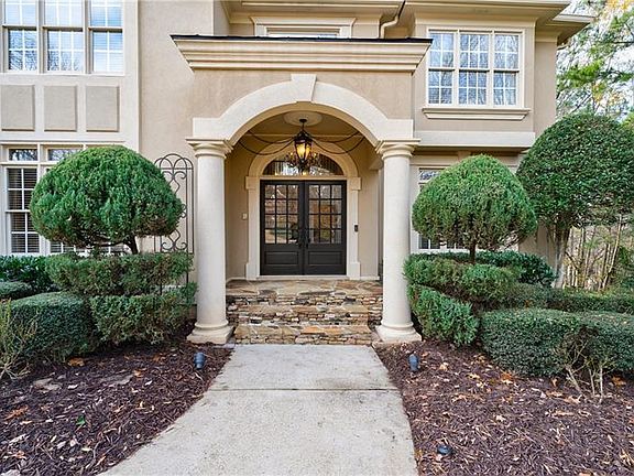 Captivating Parisian Style Home nestled on a cul-de-sac and golf course lot on the prestigious Golf Club of Georgia's Lakeside Course. This lovely .83 acre lot features a private back yard with an expansive new deck, patio and room for a pool. The Elegant Entry flows into an open floor plan boasting newly refinished hardwood flooring throughout the main level with additional hardwood steps added to the wrought iron staircases, new interior/exterior paint, 3 fireplaces and 4 bedroom suites. The island kitchen features double ovens, thermador gas cooktop and an abundance of custom cabinetry. The master features a breakfast bar, sitting room, his and her closets and a private outdoor balcony patio. The finished terrace level boats a theatre style media room, a well appointed custom bar and mini-kitchen for entertaining along with a bedroom, bath and gym. There is an abundance of storage throughout this lovely and spacious hard coat stucco home and is perfect for entertaining family and friends.