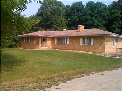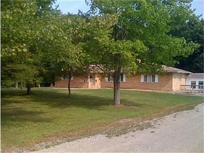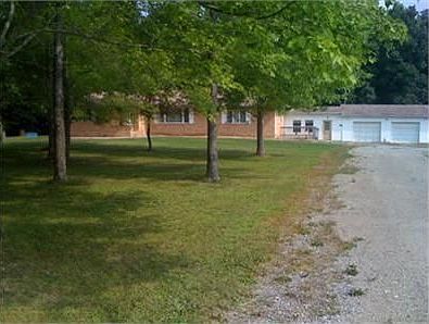 Large 3 bedroom ranch in a private setting on 8+ acres. Back of property there is a small hunting cabin. All brick with newer roof and 3 car garage. Back of house has nice enclosed porch with a view of woods.