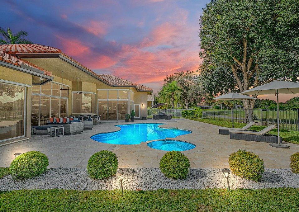 Elegance & grandeur in the prestigious golf course community of Weston Hills Country Club, you will find this state home perfectly placed on the golf course with expansive and serene views! Stunning one story, 5 Bedrooms, 4.5 Bathrooms home with a 3 car garage. Private landscaped yard with a modern pool and spa. Dramatic foyer entry with volume ceilings accent the living and formal dining room. Expansive Master Suite & bath, spacious kitchen perfectly for entertaining and the enjoyment of the morning views over looking the pool and golf while zipping your cup of coffee. Brand new roof, built-ins, custom closets, lots of extras and attention to detail makes this house your perfect home. At this price it won?t last, call us for a private showing.