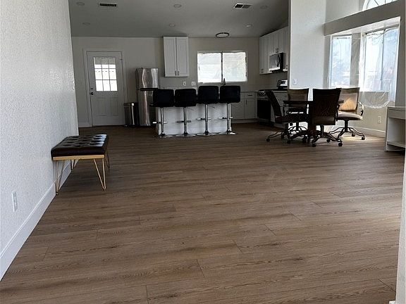 Single Story MODERN style, Open floorplan has 3 bedroom 2 bath home, with a 2 car garage, brand new garage door, a fenced back yard plus viewing deck and covered patio. Views of Colorado River and the mountains! Freshly painted home & ext.. New flooring. Kitchen boasts an island with new cabinets, Stainless Steel sink, faucet and quartz counters. New lights and fans. Vaulted ceiling in living room with a fireplace. NO HOA dues & fees at this amazing centrally located neighborhood in the heart of Laughlin!!!! Fenced backyard. Double door side gate access to backyard with ample room to park your RV, boat and jet skis! Large driveway to park as well as the 2 car garage with entry to house. Close proximity to the Colorado River, the shopping, dining, hotel casinos, parks and recreation and other in Laughlin! The master bathroom has dual sinks, a separate tub and a walk in shower! House faces West and the backyard is East side of property. Ample room in the backyard for BBQ, spa,etc.