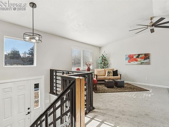 This beautifully updated home blends contemporary style with everyday comfort in one of Briargate’s most desirable neighborhoods. The modern stucco-and-stone exterior gives great curb appeal, complemented by a low-maintenance xeriscaped front yard and extra parking beside the driveway, perfect for guests, trailers, or a third vehicle. Step inside to discover new carpeting, a sleek modern stair railing, and a spacious vaulted living room with a cozy fireplace insert that’s ideal for relaxing or entertaining. The kitchen and dining area feature new laminate flooring, contemporary two-tone cabinetry, granite countertops, tile backsplash, and stainless-steel appliances. Enjoy easy access to the deck for grilling or soaking up the Colorado sunshine. The primary suite offers a private retreat with an attached full bathroom, a large walk-in closet, and access to a second deck through the closet, a unique and peaceful outdoor escape. A second upper-level bedroom, also with new flooring, completes the upstairs living area. The lower level offers exceptional flexibility with a large, light-filled garden-level family room, new carpet, and a nearby ¾ bath, perfect for a guest suite, rec room, or home office. Additional updates include a new roof (2025) and a newer hot water heater (2024). Set in the heart of Briargate near top-rated District 20 schools, local parks, trails, and everyday conveniences—this home truly combines location, livability, and lasting value!