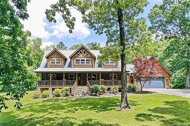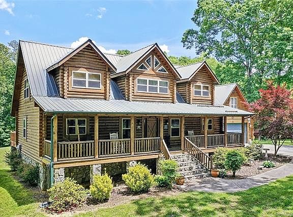 Luxurious custom built log home with a metal roof nestled on 2 acres. Option to buy adjoining 2 acre lot. (Parcel 422131.) Concrete circular, gated driveway. Fenced yard. 3 br, 3 ba, finished basement, plus a walk-up storage room over the garage. Watch the falling rain from the swing on your covered front porch. Sip your morning coffee in serenity on the massive back deck. GR features a soaring cathedral ceiling, wall of windows, and a fireplace encompassed with stone from floor to ceiling. Spotless and spacious kitchen with 12' island, granite countertops, and cupboards galore! Mudroom/laundry located off the garage makes a great drop zone. 1st floor br with a full bath just outside the door. Upstairs you'll find a loft, two charming bedrooms with vaulted ceilings, walk-in closets and their own private bathrooms. Exquisite tongue & groove ceilings throughout. Central vac. Easy access to I-85. Just 40 mins. to Uptown! Home Warranty! Sellers kindly request 24 hr notice for showings.