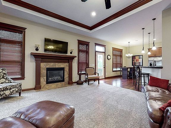 Gorgeous, well-maintained, one-owner custom-built walk-out ranch is a must see! Located on popular Newcastle Road in a family-friendly neighborhood within the Linn-Mar school district. The open and spacious main level features 12-foot ceilings, quality dark wood finishes, and solid maple hardwood floors. Kitchen highlights include granite counters, tiled backsplash, stainless steel appliances, pantry, breakfast nook and breakfast bar. The main level has three bedrooms, two full baths, a half bath and laundry. The spacious master bedroom is split from the two smaller bedrooms and boasts a tray ceiling, sitting area and roomy walk-in closet. The attached master bath includes tile floors, granite counters, jetted tub, and tiled shower. The finished walkout lower level features a large family room with fireplace, wet bar, pool table/game area, and is wired for surround sound. This level also contains two additional bedrooms, an office/study room, bathroom with shower, and storage area. Outside you'll find a wrap-around wood deck and exposed aggregate patio overlooking a large semi-wooded backyard with frequent sightings of deer and other wildlife. Additional details: This house has a central vac, security system, whole house audio system, lawn irrigation system, and invisible fence. Appliances stay with the home. Property Improvements: - New Roof - Architectural Shingles - 2020 - New Carrier Air-Conditioner - 2021 - New Carpet Throughout Entire House - 2021 - Refinished Hardwood Floors - 2021