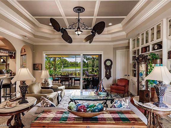 PRICE REDUCED! See Confidential Remarks. Own this beautiful home in the very desirable Orangetree Bend neighborhood at Verandah on an oversized lot where you will enjoy the sunset and lake views from the lanai. This Wyman Stokes Valencia model home offers 3 Bed+Den, 3 baths and comes with a lot of nice upgrades and features. Features include Travertine tiles throughout house, crown molding, floor to ceiling built in cabinets in living room and den, custom built in desk, California closet in master, custom farm copper sink in kitchen, outdoor kitchen with infrared BBQ and warming drawer, racks and epoxy floor in garage, upgraded fans and lighting fixtures and Electric storm shutters in rear. Oversized lot overlooks a beautiful lake. Outdoor Lanai is spacious, private and offers areas to relax with family and friends. Mature vegetation and an HOA that also covers painting of homes and roof cleaning on a planned schedule ,makes this home your place in Paradise. Verandah offers 36 holes of championship golf, Tennis, state of the art fitness, pickleball, 9 miles of hiking trails, bocce, kayaking, dog park, playground, restaurants and an active social calendar for all.