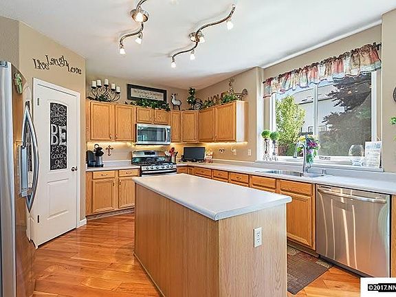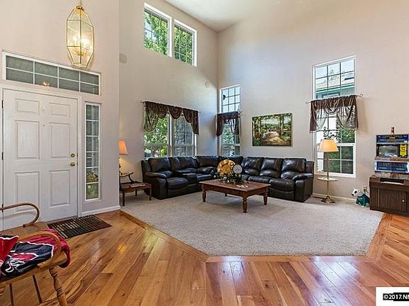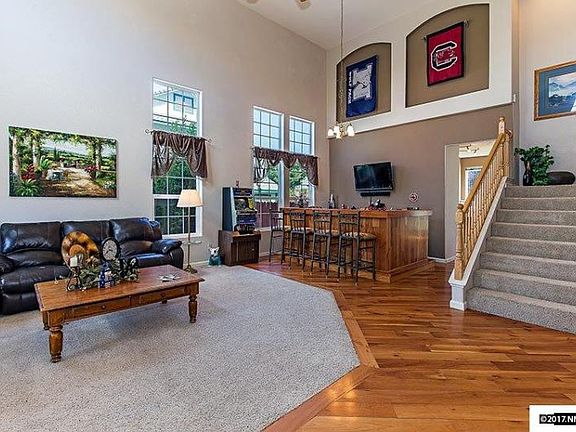Pride of ownership shows in this NW Reno family home! 3051 +/- sq ft ideal circular floorplan that is perfect for entertaining. Formal living & dining area converted to custom full bar, open kitchen w/French doors onto lush yard. Fam room boasts gas fireplace. Bdrm & bath on main l, 3 large bdrms, full bath & huge master suite retreat upstairs. Master bath has natural light, double sinks, his&hers closets, shower & garden tub. 3 car gar. + storage. Close to UNR & Shopping.