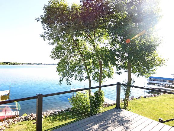 Enjoy the panoramic view of beautiful Enemy Swim Lake. Wow what a view! Great fishing right off of the dock. Year-round home includes a 32x12 deck with a covered patio under it, geo-thermal heating and cooling system, and basement boat house with newer boat track and winch. The dock was new in 2015. WEB water.
