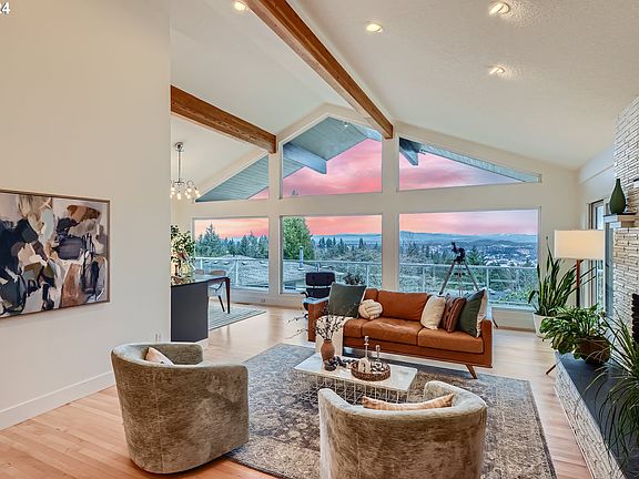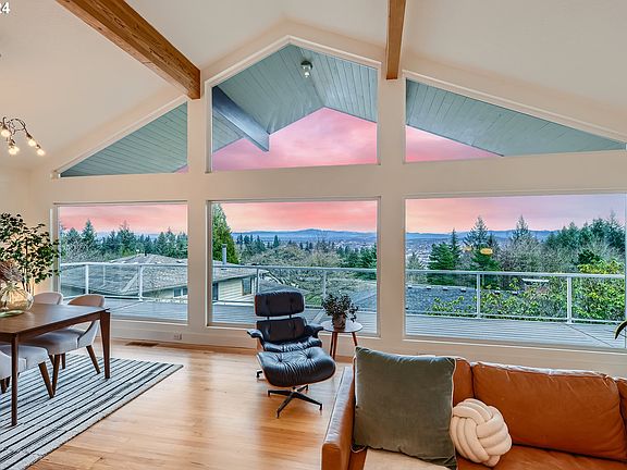 Vaulted ceilings highlight the mesmerizing, expansive view of PDX in this beautifully remodeled mid-century gem. Enjoy cooking, eating, relaxing and sleeping to the ever changing moods of the sky and amazing city view. One level living at its finest plus huge additional space below for home gym, office or theatre. Easy maintenance yard. Oversized garage with tall ceilings to house your toys and cars. Quiet, dead end street leads to the hiking trails of SW and the Marquam Nature Park. Enjoy the privacy and serenity where everyday feels like a vacation. Seller is a licensed Real estate broker in the state of Oregon. [Home Energy Score = 2. HES Report at https://rpt.greenbuildingregistry.com/hes/OR10224929]