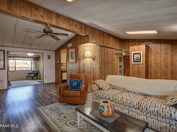 Very nice Manufactured home in a great location. Come and enjoy the views of Willow Lake and Granite Mountain, along with easy access to Willow Lake and trails for all your hiking needs. This home is a 2 bedroom with 2 full baths. Enjoy the extra space with the added AZ room/family room which adds approximately 250 square Feet. Home had a new roof in 2021. Seller has put in a new wood fence around the back yard as well as wood laminate flooring, also has a new shed in back yard. Also has a very nice finished 2 car garage with lots of extra storage space. Next to garage is a concrete pad that would be perfect for parking an RV. Refrigerator, washer and dryer to convey. The Perfect Centrally located home is within minutes to downtown Prescott, along with hiking, fishing and kayaking.