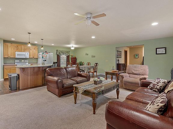 You can have the Oregon Dream! Living is easy in this spacious 4138sf home on almost 5 usable acres highlighted by incredible mountain views, a large pond & plenty of space for animals. Front entry welcomes you to an expansive floorplan featuring 4 bedrooms, 3 bathrooms, an office & plenty of space to relax or entertain. You'll love the open great room featuring a well-appointed kitchen complete w/ a pantry closet, large island, dining area & a living room w/ French doors that open to a large patio & fire pit. Upstairs you'll find a comfy sitting area, guest bath & 4 bedrooms including a spacious master suite complete w/ ensuite bath, huge walk-in closet w/ laundry room, & a sitting area w/ sliding door that leads to a private deck overlooking the mountains & pond below. Extras include an attached 2 car garage, space to park a boat or RV, small storage barn, a cross-fenced pasture area perfect for 1-2 horses & a serene year-around pond stocked w/ fish! Call today before it's too late