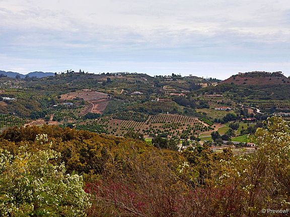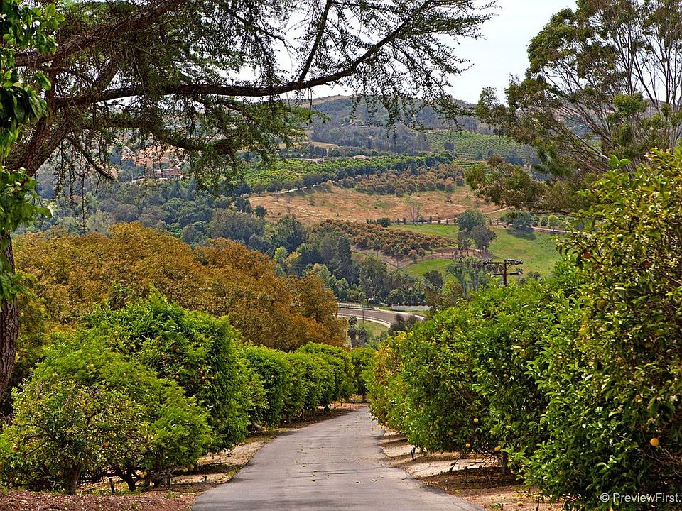 Charming 3 BR/2 BA home on SPECTACULAR 5.38 acre VIEW LOT in Bonsall. 1st time on market in a generation, this home sits atop a knoll w/300 degree views to the best estate homes & groves, SLR Downs track, & rolling hills of Bonsall. Great for horses, vineyard, or flowers. Creek on property, WELL WATER potential. Nicely maintained w/ oversized tile flooring, wood cabinetry in kitchen, view windows & sliders, covered patio. Fully fenced, several gates, plentiful citrus, fruit, & nut trees. Bonsall schools. RARE opportunity to own a home with Mid-Century character on a 5.38 acre parcel with one of the most spectacular PANORAMIC VIEWS in Bonsall. ** Seriously ??? this home has about 300 degree views, overlooking estates & groves in Hialeah Estates, the SLR training track, over Olive Hill & Bonsall toward the ocean, and northward to Fallbrook. ** The 5.38 acre lot is fully fenced & gated with electric-gated driveway plus other access gates to the lower portion of the property. ** Currently planted to flowers, citrus & nuts, there is potential for horses or a vineyard. ** Animal Designator L. ** A PERMITTED WELL exists on the lower property; it just needs electrical service and a pump. ** A creek runs across the north end of the lot. ** The single story ranch-style home is nicely maintained w/updated flooring & refinished kitchen cabinetry. ** The LIVING ROOM features a FIREPLACE, sliding glass doors to the southerly view, and oversized porcelain tile flooring. ** Open-style floor plan features flowing LIVING ROOM, DINING AREA, and KITCHEN with BREAKFAST BAR. ** Also features Office & Laundry Room & Attached Garage. ** A portion of the home, including one of the bedrooms may be an unpermitted addition. ** The lot also features two built-in DOG KENNEL areas with multiple stalls, a large SHED, and a covered potting or equipment-storage area. ** Potential room for RV parking. **