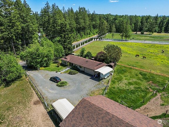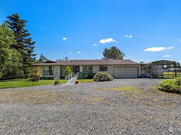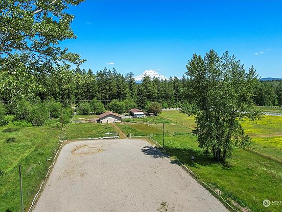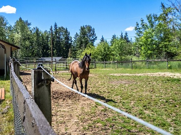 FINALLY a home for you and your horses on a budget that you can afford! House + barn + sand arena + fenced and crossed fenced pastures, this property MAXIMIZES the 2 acres to the fullest! 40x36 Barn boasts 5 stalls + tack and storage, multiple paddocks/pastures, hot/cold water, fenced and hot wired. The 192x99 (+/-) sand arena is ideal, you can even get glimpses of Mt Rainier while riding. Home features 2 bedrooms + 1 bath, an open living concept, large utility room and a 2 car garage. Home has an enclosed fully fenced yard too and a deck. 2 additional carports, gated entry and a round-a-bout driveway, perfect for turning those trucks around with trailers. Whole house generator too. This property offers SO MUCH!
