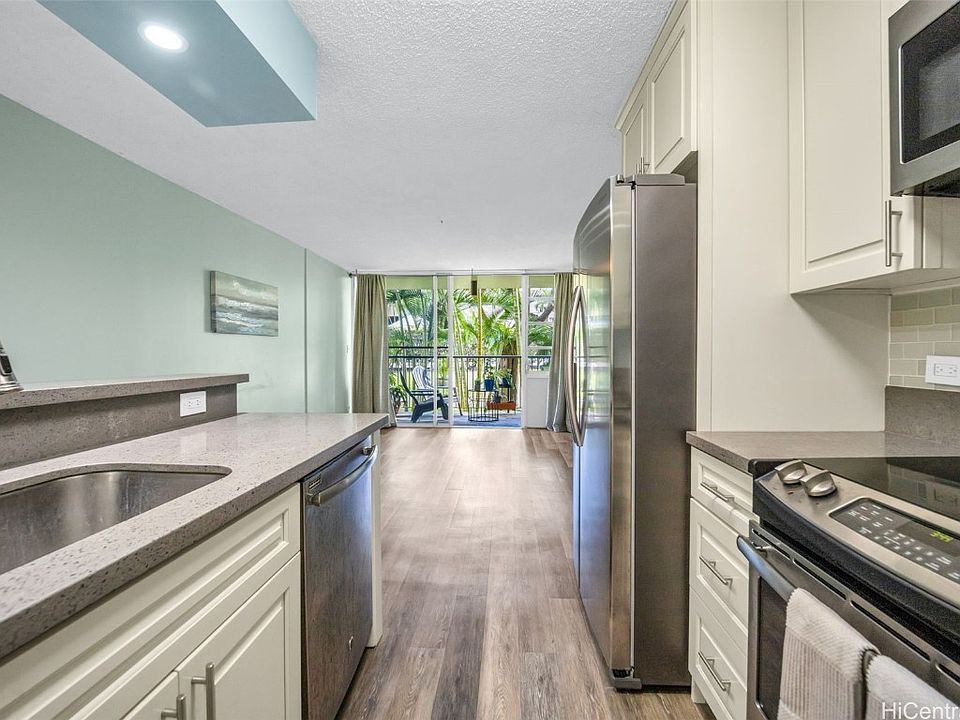 Welcome Home to this desirable GROUND FLOOR unit in well maintained Century West. Just a short distance to parking, dedicated storage, and amenities create this easy and rarely available lifestyle.This convenient Salt Lake location features easy access to the airport, freeways, and many island attractions. This secured building features abundant amenities which include: pool, BBQ areas, playground, and lots of guest parking all surrounded by lush tropical landscape. This lovely home has been completely remodeled with the utmost attention to detail. Upgrades include newly installed luxury vinyl flooring and brand new designer kitchen and baths (with top quality materials). This comfortable 2 bed/ 2 bath layout is spacious and looks out to a lovely garden view (on the preferred side on the building). Ready to move in at an affordable price, you won't want to miss this opportunity.