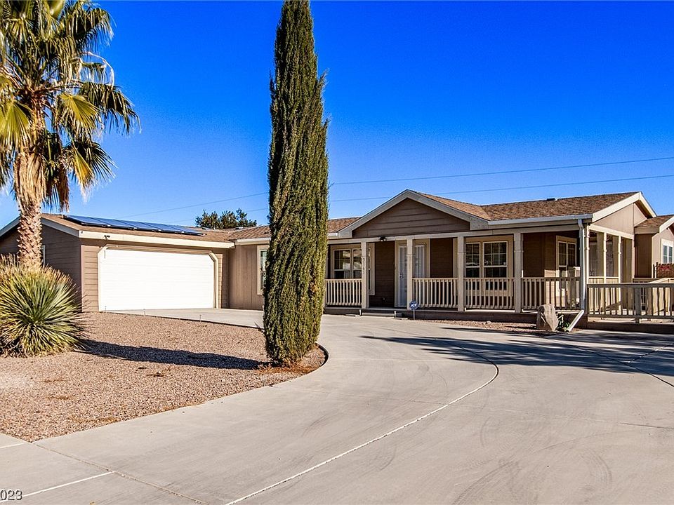 Looking for a new place to call home? Property has been converted to real property! This beautiful 3-bedroom residence is the one! A sided 2-car garage, extended driveway, wrap-around porch, and an easy-care landscape. Home also includes an RV gate with convenient parking, hookups, and dumping. Discover an open floor plan With vaulted ceilings and neutral paint . Primary bedroom includes an ensuite with dual sinks & a walk-in closet. Sizable laundry room for added functionality. Backyard features a covered patio and plenty of room for ATV or boats. plus SOLAR PANELS for energy savings! Located near ATV mountain trails, this home is fully converted to real property! Home, sweet home!