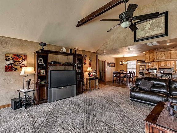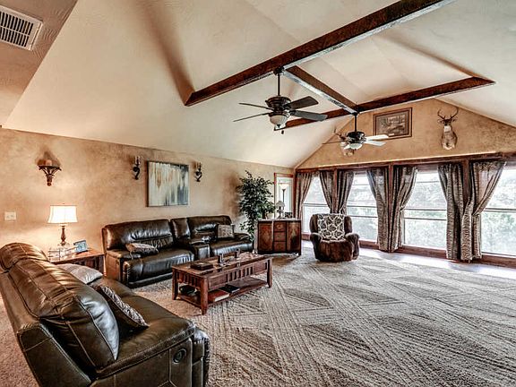 This all brick 3 bed/2.5 bath home with walk out basement sits on 3 beautiful acres. Cathedral beamed ceilings with large windows instantly invite you into the spacious living room that opens up into the kitchen/dining combo. Custom cabinetry, backsplash, stainless steel appliances, and bar with upper cabinets can all be found in the kitchen. The master bedroom flows into a large master bath with double vanities, corner tub, and large walk in tiled shower. A spacious laundry room is found right off of the dining area and includes wired shelving, lower cabinets, and a sink. Enjoy the views from the covered deck while entertaining guests, or watching kids play below. The lower level offers endless possibilities including additional beds, family room, & safe room. The 3 car garage (see more)
