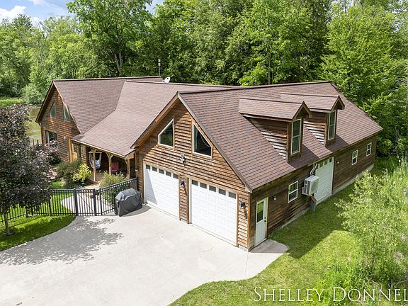 Wow! River living at it's best! This fantastic custom built home sits on 200 ft of the Muskegon River in a very private setting with amazing views for every season! Offering endless recreational opportunities, this property can be your year round residence, a vacation getaway, OR continued as a very lucrative Airbnb! You will love the spacious open floor plan for large gatherings, the updated gourmet kitchen, a main floor primary that opens to the large deck, an upper level theatre room, separate upper bonus area/guest suite with 2 bedrooms & a full bathroom, a kitchenette & easy heating/cooling with mini-splits. The jaw dropping garage is 26' X 54', a mechanic or hobbyists dream! cont. You will appreciate the extensive updates and attention to detail in this stunning home that has been very well cared for! Sit back and relax on the extensive deck overlooking the river. Sale includes 4 parcels, totaling approx 3.9 acres. Most furnishings are available as a reasonable separate sale making the property turnkey, saving you extensive time and money in furnishing it! Easy to view by appointment with your agent or the listing agent. Call today for your private tour!