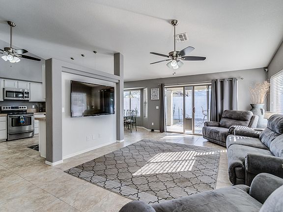 Updated 3 Bedroom, 2 bath home in Austin Point. Kitchen opens to dining area & great room. Vaulted ceilings, 20'' tile flooring in main rooms, wood laminate in the Master bedroom. Guest bedrooms feature bamboo flooring. Backyard is enclosed with a covered patio, grass area and includes a storage shed. 2-car garage with double-length driveway to accommodate extra parking. Community has sidewalks and a neighborhood park
