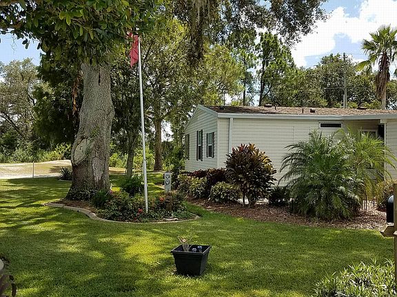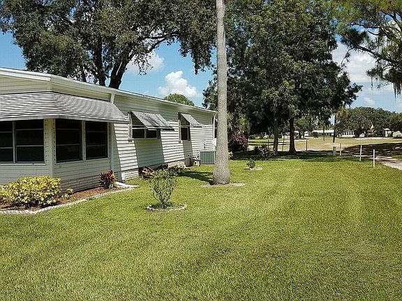 Lovely 2 BR 2 BA completely furnished home, that sits by the 9th green and the 10th tee box. Beautiful setting to enjoy on the Lanai, home offers 1372 SQ. FT. of living space. Park offers many planned activities and amenities. Golf Cart Included. AC 2011. Roof 5 years old