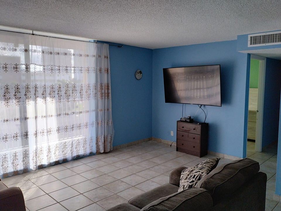 Bright 2 bedroom 2 bath apartment, steps away from Golden Beach, across from the Ocean. Perfect for a couple with children. Furnished. This apartment is in a well managed community. $150 for condo application, application must be approved by the Board, there is one car parking space, if you own two vehicles might have to look for a rental from snow birds or other owners.