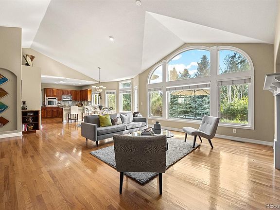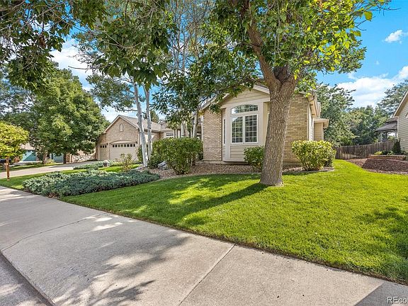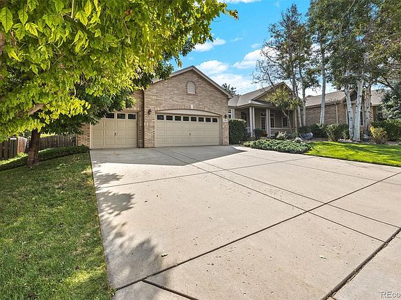 The painterly composition of this home’s exterior—with graceful architectural lines, soft-hued brick, bay windows, and a columned portico, all framed by fluttering aspen trees and custom landscaping — perfectly sets the tone for the entire property. A skillful design inside provides an easy, spacious, ranch-style layout. There’s also ample room on this huge lot to enjoy a glorious backyard patio surrounded by a lush lawn; pine, willow and shade trees; and attractive, irrigated landscaping. Back inside, the main level has contemporary, tasteful finishes, from the extensive hardwood floors to the rich-grained kitchen cabinets, vaulted ceilings and picture windows. A generous primary suite on the main floor has a large soaking tub and a spacious walk-in closet. The large, bright study will delight remote workers and those with hobbies. Two more large bedrooms are on the main floor (with California Custom Closets in each) and they share a Jack and Jill bathroom. Downstairs is one of the best basement layouts we’ve seen, with a central, round bar at its heart for epic entertaining, plus an exercise room, bedroom and bath. This impressive estate is tucked into a quiet neighborhood near the border of Lafayette and Erie, with a community pool, tennis courts, miles of trails, and mountain views from Erie Lake.