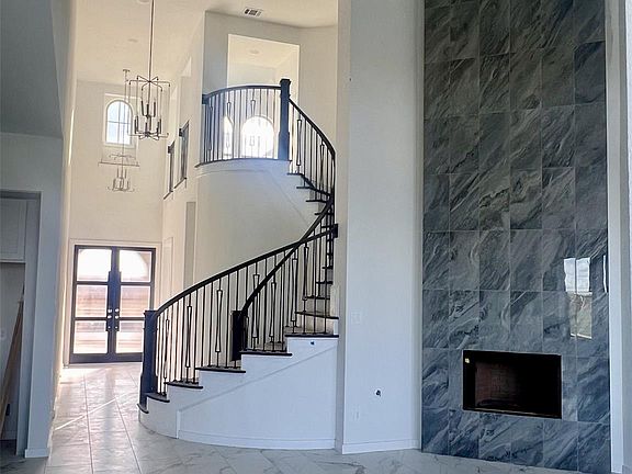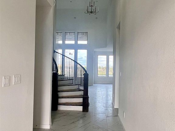 This spacious two-story home with water view back yard is designed for modern living, blending open spaces with private retreats. Upon entering, you're greeted by a study and a grand spiral staircase that elegantly guides you through the rest of the home. A bedroom with ensuite bath, study and entertainment room are located just off the foyer- designating spaces for study, play and relaxation. The first floor features a stunning rotunda wood staircase that opens to the family room with water views out the back of the home that connects to the dining area and a well-equipped kitchen with a central island, perfect for cooking and entertaining. The primary suite offers a luxurious escape with a spacious bathroom and walk-in closet. The entertainment room provides a dedicated space for leisure. On the second floor, a game room, lifestyle room and two large bedrooms offer additional private spaces.