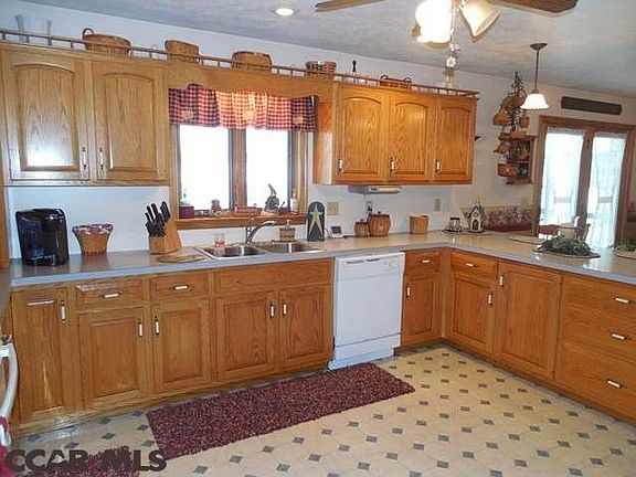 A Touch of Country. Come in from the cold & come home to this heart-warming ranch perfectly positioned on 2 acres overlooking farm fields & beautiful mountain scenery. Real one-level living delivers a welcoming living room, bright & cheery kitchen with solid wood cabinets & a breakfast bar, dining room with French doors to the rear covered deck & a handy 1st floor laundry room. There is a master suite with a walk-in closet & full private bath, 2 additional bedrooms & a full family bath. The finished walk-out lower level boasts a spacious rec room, full kitchen & a cozy Harmon coal stove to help sublimit heating costs. Additional highlights include a side-load 2-car attached garage, covered front porch & a shed for added storage.