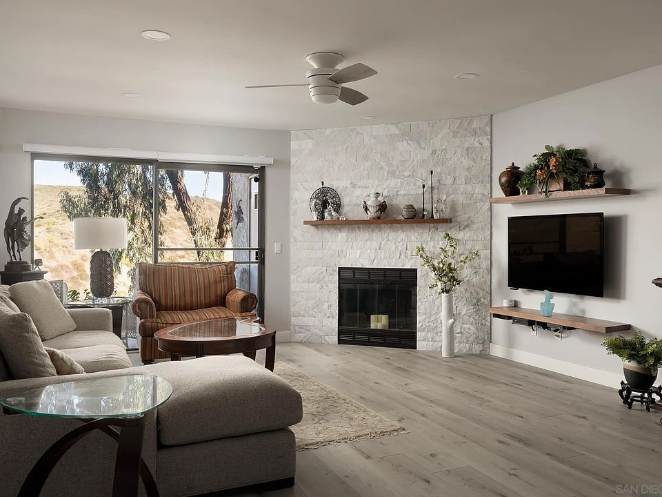 Experience the best of Sea Point Tennis Club in this meticulously upgraded two-bedroom, two-bathroom, single level downstairs condo! Revel in the smooth-coated and freshly painted walls and ceilings throughout, complemented by new LVP flooring. The kitchen features new shaker cabinetry, quartz countertops, and stainless steel appliances. The master bathroom is a spa-like retreat with a new dual vanity, frameless shower enclosure, and floor-to-ceiling ceramic wall tile. The entire space is illuminated by new ceiling lighting and all electric outlets have been replaced. Additional highlights include in-unit washer/dyer, remote controlled window shades, a 1 car detached garage, and a mesmerizing view of Box Canyon – a rare gem in Sea Point! This condo is the epitome of modern living, offering comfort, style and attention to detail. Within a short distance to top rated schools, shopping centers, the 5 freeway and the beach this condo is sure to impress!